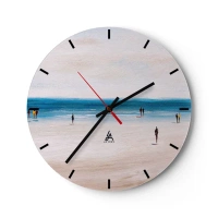 Falióra, Óra - Alakok sétálnak a tengerparton, kilátással a nyugodt tengerre - 30x30cm - Természetes igény - Modern fali dekoráció nappalihoz, konyhához és hálószobához ARTTOR