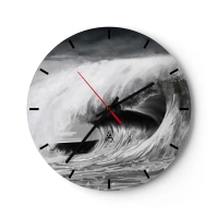 Falióra, Óra - Dinamikus hullám fekete és fehér árnyalatokban - 30x30cm - Az óceán haragja - Modern fali dekoráció nappalihoz, konyhához és hálószobához ARTTOR