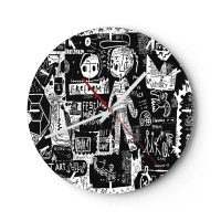 Falióra, Óra - Dinamikus fekete-fehér művészi firka motívummal ellátott óra számlap. - 30x30cm - A szellemi fiatalság törvényei és örömei - Modern fali dekoráció nappalihoz, konyhához és hálószobához ARTTOR