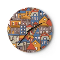 Falióra, Óra - Színes épületek grafikus stílusban - 30x30cm - A ház mögött van a ház - Modern fali dekoráció nappalihoz, konyhához és hálószobához ARTTOR