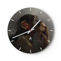 Falióra, Óra - Egy gondolkodó csimpánz sötét háttér előtt - 30x30cm - Biztosan gondolkodó - Modern fali dekoráció nappalihoz, konyhához és hálószobához ARTTOR