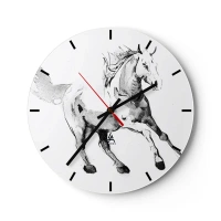 Falióra, Óra - Vázlat egy vágtató lóról fehér alapon - 30x30cm - Megszelídíthetetlen lélek - Modern fali dekoráció nappalihoz, konyhához és hálószobához ARTTOR