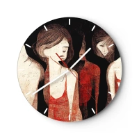 Falióra, Óra - Sötét háttér előtt piros ruhás női alakok - 30x30cm - A sötétség madonnái - Modern fali dekoráció nappalihoz, konyhához és hálószobához ARTTOR