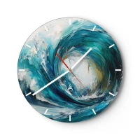 Falióra, Óra - Dinamikus, türkiz színekben örvénylő tengerhullám - 30x30cm - Tengeri portál - Modern fali dekoráció nappalihoz, konyhához és hálószobához ARTTOR