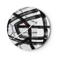 Falióra, Óra - Dinamikus fekete-fehér absztrakció széles ecsetvonásokkal - 30x30cm - Absztrakció - a fekete kifejezése - Modern fali dekoráció nappalihoz, konyhához és hálószobához ARTTOR
