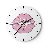 Falióra, Óra - Rózsaszín ajkak közeli képe egy fehér óra előtt - 30x30cm - Készen állsz a csókra? - Modern fali dekoráció nappalihoz, konyhához és hálószobához ARTTOR