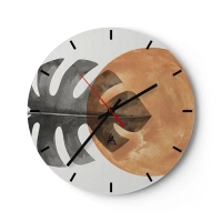 Falióra, Óra - Egy szörnyeteglevél egy nagy narancssárga kör előtt, mint a nap - 30x30cm - Mindig a nap - Modern fali dekoráció nappalihoz, konyhához és hálószobához ARTTOR