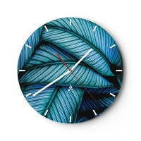 Falióra, Óra - Sötétzöld trópusi levelek fekete háttéren - 30x30cm - Maga a zöldellő növényzet - Modern fali dekoráció nappalihoz, konyhához és hálószobához ARTTOR