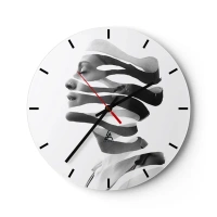 Falióra, Óra - Egy nő absztrakt portréja fekete-fehérben - 30x30cm - Szürreális portré - Modern fali dekoráció nappalihoz, konyhához és hálószobához ARTTOR