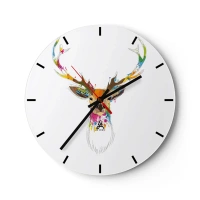 Falióra, Óra - Művészi szarvasfej, színes díszítésekkel - 30x30cm - Színben fürdő gyengéd szarvas - Modern fali dekoráció nappalihoz, konyhához és hálószobához ARTTOR