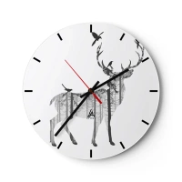Falióra, Óra - Szarvas sziluettje, erdő és madár motívummal kitöltve - 30x30cm - Erdei jó szellem - Modern fali dekoráció nappalihoz, konyhához és hálószobához ARTTOR