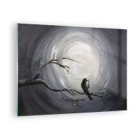 Üveg kép - Egy holló ül egy ágon a telihold hátterében - 70x50cm - Az éjszaka rejtélyének kulcsa - Modern fali dekoráció nappalihoz és hálószobához ARTTOR