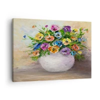 Vászonkép - Egy színes virágcsokor fehér vázában - 70x50cm - Csendélet fehér vázával - Modern fali dekoráció nappalihoz és hálószobához ARTTOR