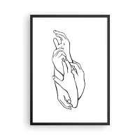 Poszter fehér keretben - Egy minimalista vázlat összekulcsolt kezekről fehér háttér előtt. - 50x70cm - Jó érintés - Modern fali dekoráció nappalihoz és hálószobához ARTTOR