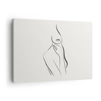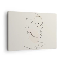 Vászonkép - Egy női arc finom vázlata világos háttér előtt - 70x50cm - Bizonyos vonallal - Modern fali dekoráció nappalihoz és hálószobához ARTTOR