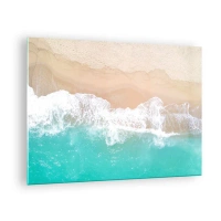 Üveg kép - Légifelvétel a strandról türkizkék vízzel és fehér hullámokkal - 70x50cm - Simogató érintés - Modern fali dekoráció nappalihoz és hálószobához ARTTOR