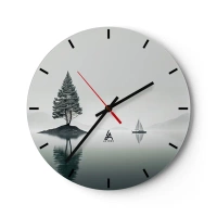 Falióra, Óra - Egy minimalista tájkép egy szigettel, egy fával és egy vitorláshajóval a vízen. - 30x30cm - Egy álom - Modern fali dekoráció nappalihoz, konyhához és hálószobához ARTTOR