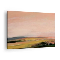 Vászonkép - Rózsaszín és arany árnyalatú tájkép - 70x50cm - Rózsaszínben - Modern fali dekoráció nappalihoz és hálószobához ARTTOR
