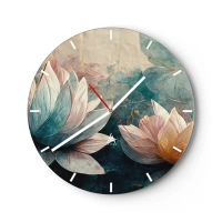 Falióra, Óra - Lótuszvirágok a tó zöldeskék felszínének hátterében - 30x30cm - Tavi csillagok - Modern fali dekoráció nappalihoz, konyhához és hálószobához ARTTOR