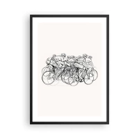 Poszter fehér keretben - Vázlat a minimalista háttér előtt versenyző kerékpárosokról - 50x70cm - Együtt, a csapatban - Modern fali dekoráció nappalihoz és hálószobához ARTTOR