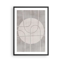 Poszter fehér keretben - Geometriai vonalak és egy kör szürke árnyalatokban - 50x70cm - Körkörös és egyenes - Modern fali dekoráció nappalihoz és hálószobához ARTTOR