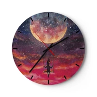 Falióra, Óra - Egy lány egy hintán lebeg a hold alatt - 30x30cm - Álmodozva - Modern fali dekoráció nappalihoz, konyhához és hálószobához ARTTOR