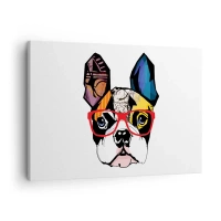 Vászonkép - Bulldog színes illusztrációban piros szemüveggel - 70x50cm - Értelmiségi - Modern fali dekoráció nappalihoz és hálószobához ARTTOR