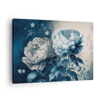 Vászonkép - Kék pünkösdi rózsák finom mintázatú, finom háttéren - 70x50cm - Egy jól összeillő pár - Modern fali dekoráció nappalihoz és hálószobához ARTTOR