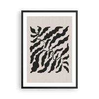 Poszter fehér keretben - Absztrakt növényi kompozíció fekete színben bézs alapon - 50x70cm - A tér természete - Modern fali dekoráció nappalihoz és hálószobához ARTTOR