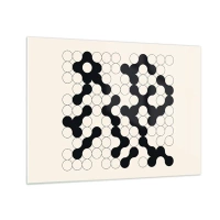 Üveg kép - Összefüggő pontokból álló fekete-fehér grafikus mozaik. - 70x50cm - Kínai játék - variáció - Modern fali dekoráció nappalihoz és hálószobához ARTTOR