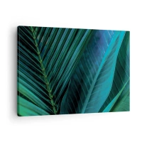 Vászonkép - Sötét tónusú pálmalevél részletének közeli képe - 70x50cm - A természet pontossága - Modern fali dekoráció nappalihoz és hálószobához ARTTOR