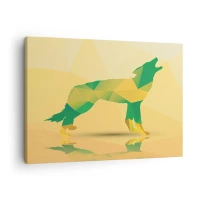 Vászonkép - Geometrikus farkas sziluett zöld és sárga árnyalatokban - 70x50cm - Magányos farkas - Modern fali dekoráció nappalihoz és hálószobához ARTTOR