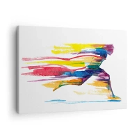 Vászonkép - Egy futó absztrakt színekben, amely a dinamizmust és az energiát szimbolizálja - 70x50cm - Futás a szivárványon - Modern fali dekoráció nappalihoz és hálószobához ARTTOR