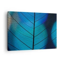Vászonkép - Közeli kép egy kék levélről, látható erezetrészletekkel - 70x50cm - Bonyolult konstrukció - Modern fali dekoráció nappalihoz és hálószobához ARTTOR