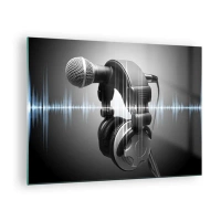 Üveg kép - Mikrofon fejhallgatóval a hanghullámok hátterében - 70x50cm - Még mindig hallani az éneket - Modern fali dekoráció nappalihoz és hálószobához ARTTOR