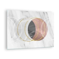 Üveg kép - Geometrikus körök réz, arany és márvány árnyalataiban - 70x50cm - A szférák zenéje - Modern fali dekoráció nappalihoz és hálószobához ARTTOR