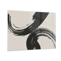 Üveg kép - Fekete, dinamikus kalligrafikus ecsetvonások világos háttéren. - 70x50cm - Söprő és körkörös - Modern fali dekoráció nappalihoz és hálószobához ARTTOR