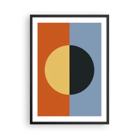 Poszter fehér keretben - Geometriai kompozíció körrel és kontrasztos színekkel - 50x70cm - A meleg és a hideg kompozíciója - Modern fali dekoráció nappalihoz és hálószobához ARTTOR