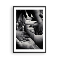 Poszter fehér keretben - Fekete-fehér motívum a kezekről, amelyek a köteléket szimbolizálják - 50x70cm - Embernek lenni - Modern fali dekoráció nappalihoz és hálószobához ARTTOR