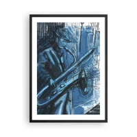 Poszter fehér keretben - Szaxofonon játszó zenész művészi vázlata - 50x70cm - Városi rapszódia - Modern fali dekoráció nappalihoz és hálószobához ARTTOR