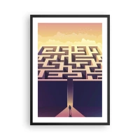 Poszter fehér keretben - Minimalista labirintus fekete-fehérben - 50x70cm - Magány a csúcson - Modern fali dekoráció nappalihoz és hálószobához ARTTOR