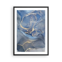 Poszter fehér keretben - Absztrakt foltok kék és arany árnyalatokban - 50x70cm - Arany por - Modern fali dekoráció nappalihoz és hálószobához ARTTOR
