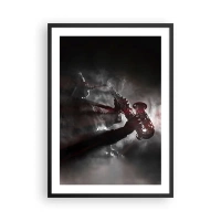 Poszter fehér keretben - A szaxofonos erős sziluettje jazz hangulatban - 50x70cm - A jazz párolgásban - Modern fali dekoráció nappalihoz és hálószobához ARTTOR