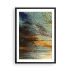 Poszter fehér keretben - Arany és kék festékecskék absztrakt kompozíciója. - 50x70cm - Egy nem véletlen színes kompozíció - Modern fali dekoráció nappalihoz és hálószobához ARTTOR
