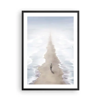Poszter fehér keretben - Egy alak egyedül sétál egy ösvényen a nyugodt vizek között. - 50x70cm - Fényes jövő - Modern fali dekoráció nappalihoz és hálószobához ARTTOR