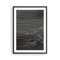 Poszter fehér keretben - Absztrakt kompozíció vonalakkal fekete háttéren - 50x70cm - Ritmus és akcentus - Modern fali dekoráció nappalihoz és hálószobához ARTTOR