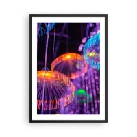 Poszter fehér keretben - Színes, futurisztikus medúza neonfényben - 50x70cm - Világító szökőkút - Modern fali dekoráció nappalihoz és hálószobához ARTTOR