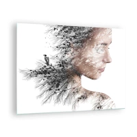 Üveg kép - Nő portréja ágakkal a háttérben - 70x50cm - Az erdő szelleme - Modern fali dekoráció nappalihoz és hálószobához ARTTOR