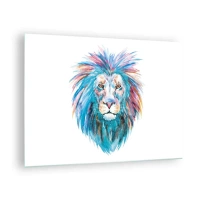Üveg kép - Színes portré egy oroszlánról művészi stílusban - 70x50cm - Felvillanyozó aura - Modern fali dekoráció nappalihoz és hálószobához ARTTOR