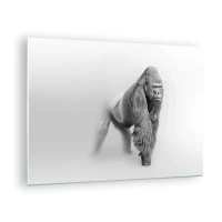 Üveg kép - Fekete-fehér portré egy fenséges gorilla fehér háttér előtt - 70x50cm - Magabiztos az erejében - Modern fali dekoráció nappalihoz és hálószobához ARTTOR